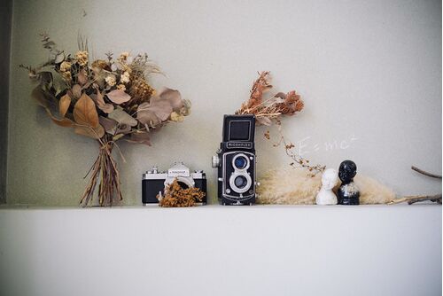 帰省の折、大阪のmogu cameraさんにフィルムの現像をお願いしてきました。 白を基調としたおしゃれな空間。 ラボの中にわんこ! 宝物を探し中。 現像が仕上がってきました。ネガとプリントを入れた茶色の袋には、 ラボマン小倉さんのめがねイラストがそっと…